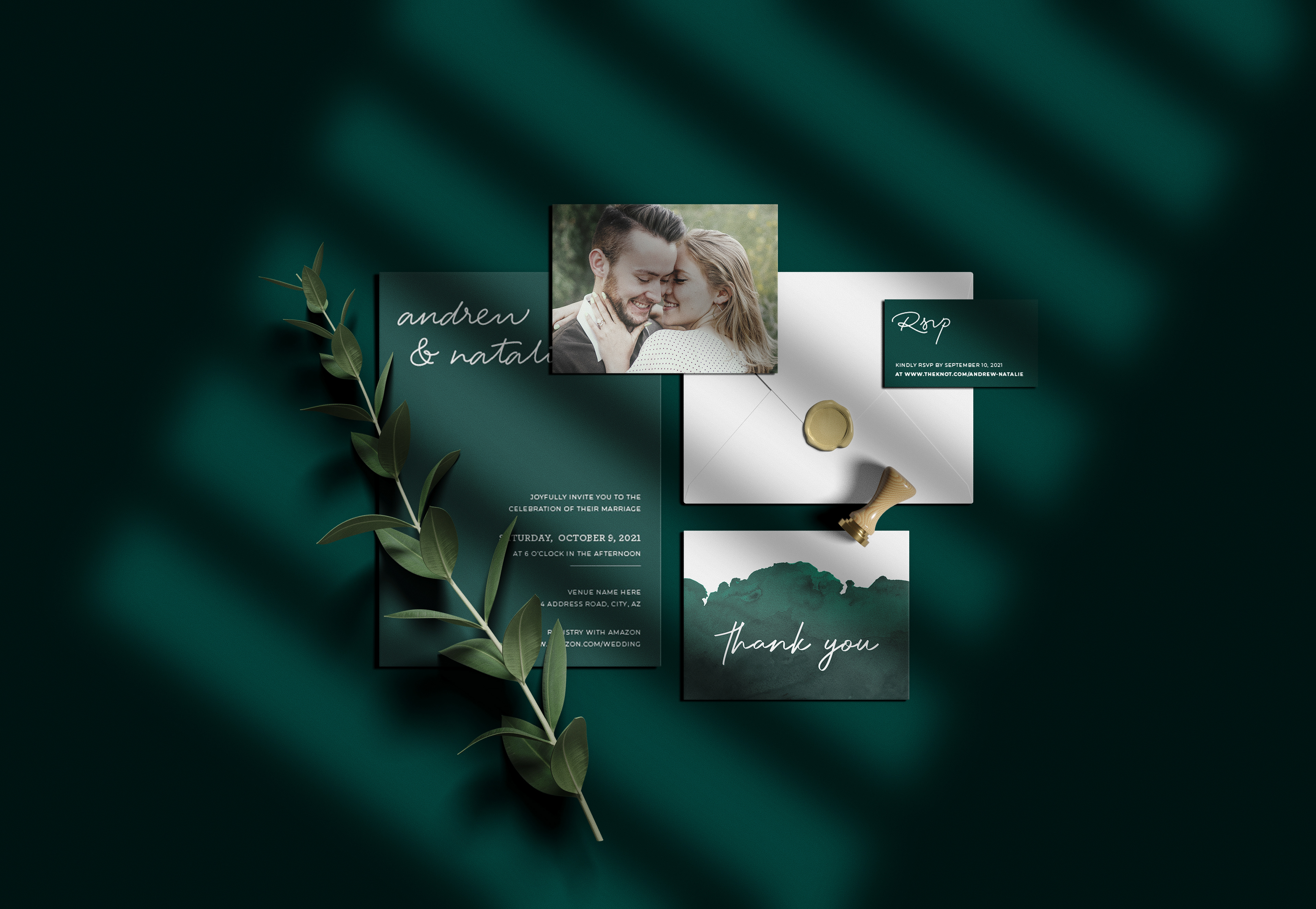 Elegant Emerald Wedding Invitation Suite