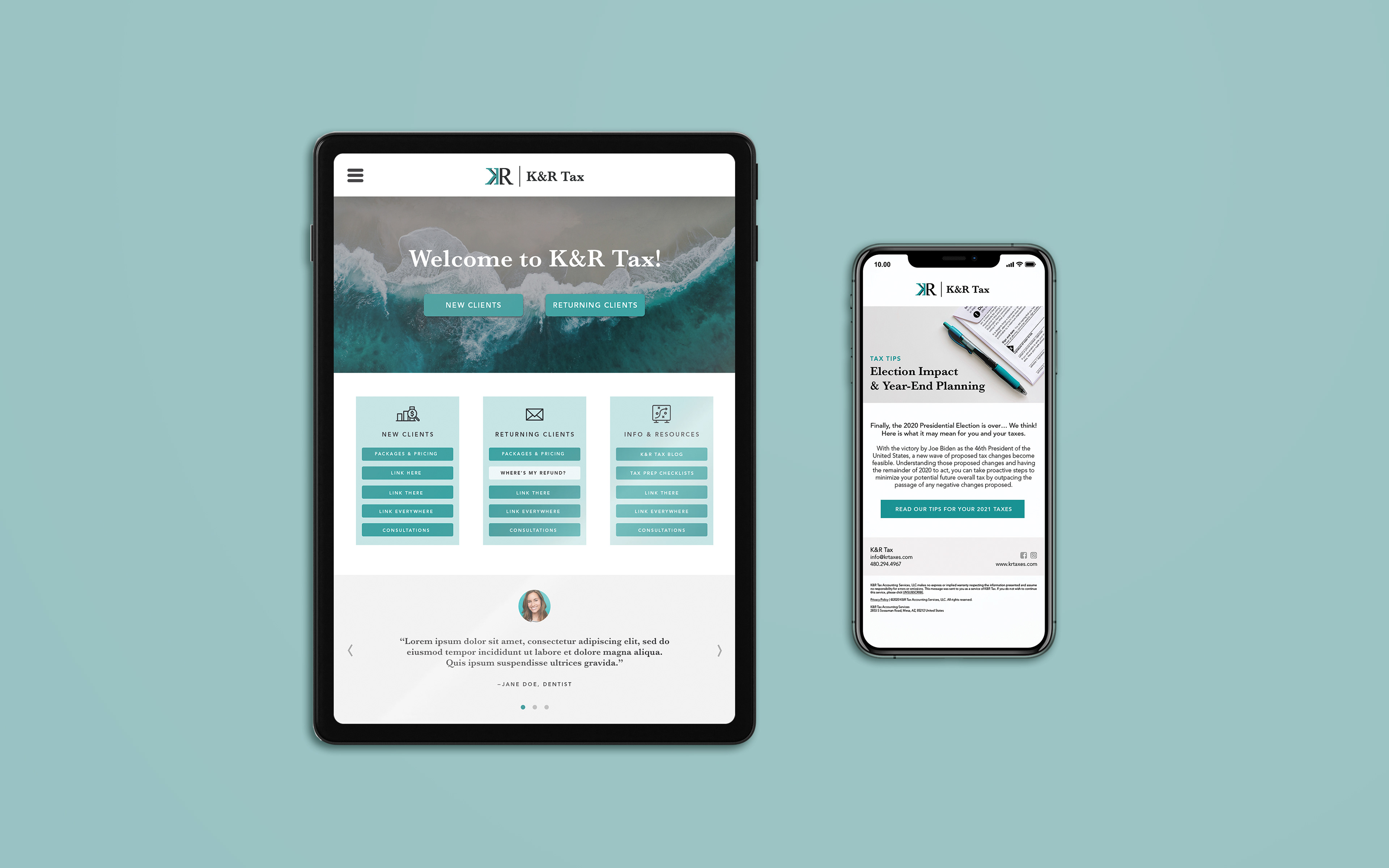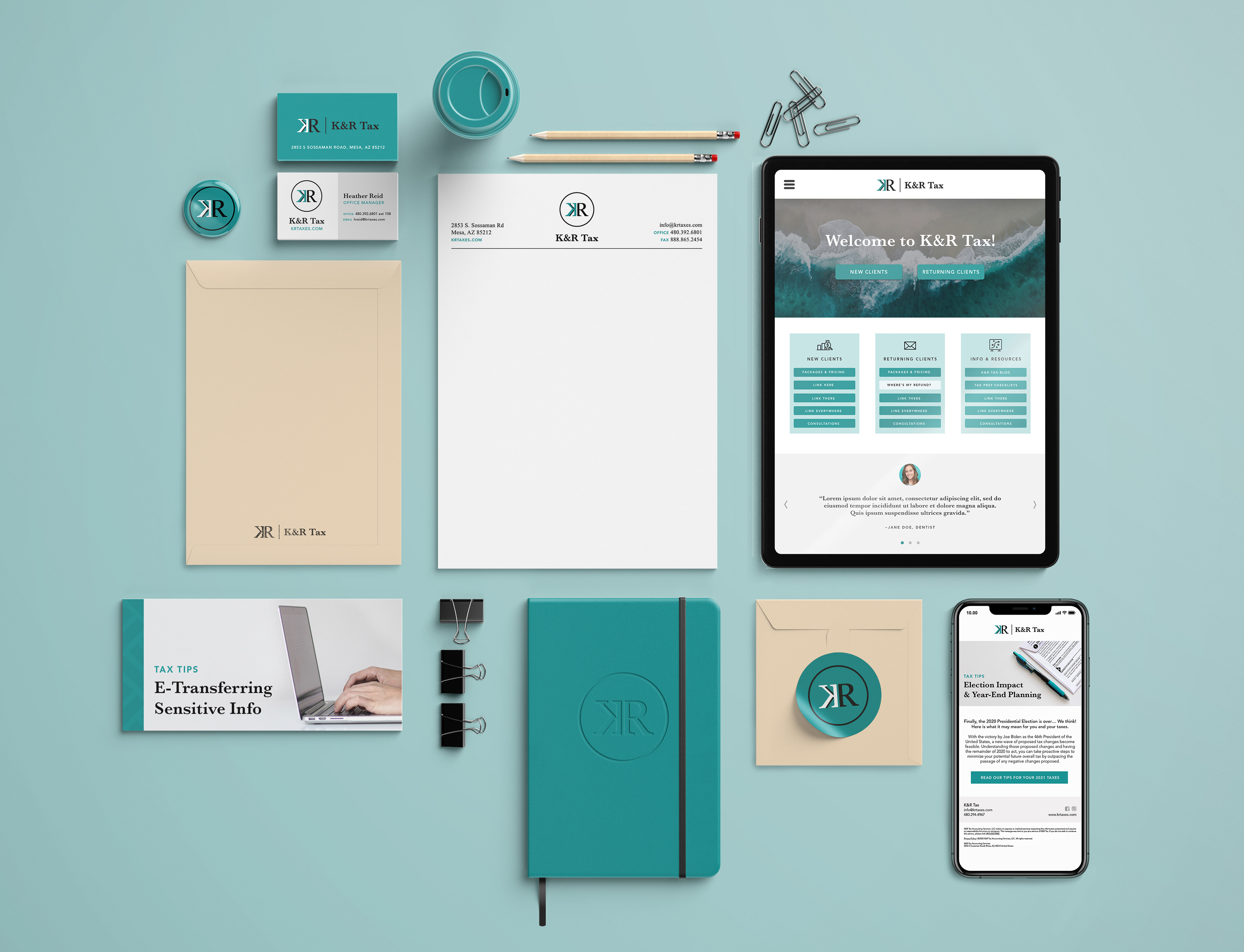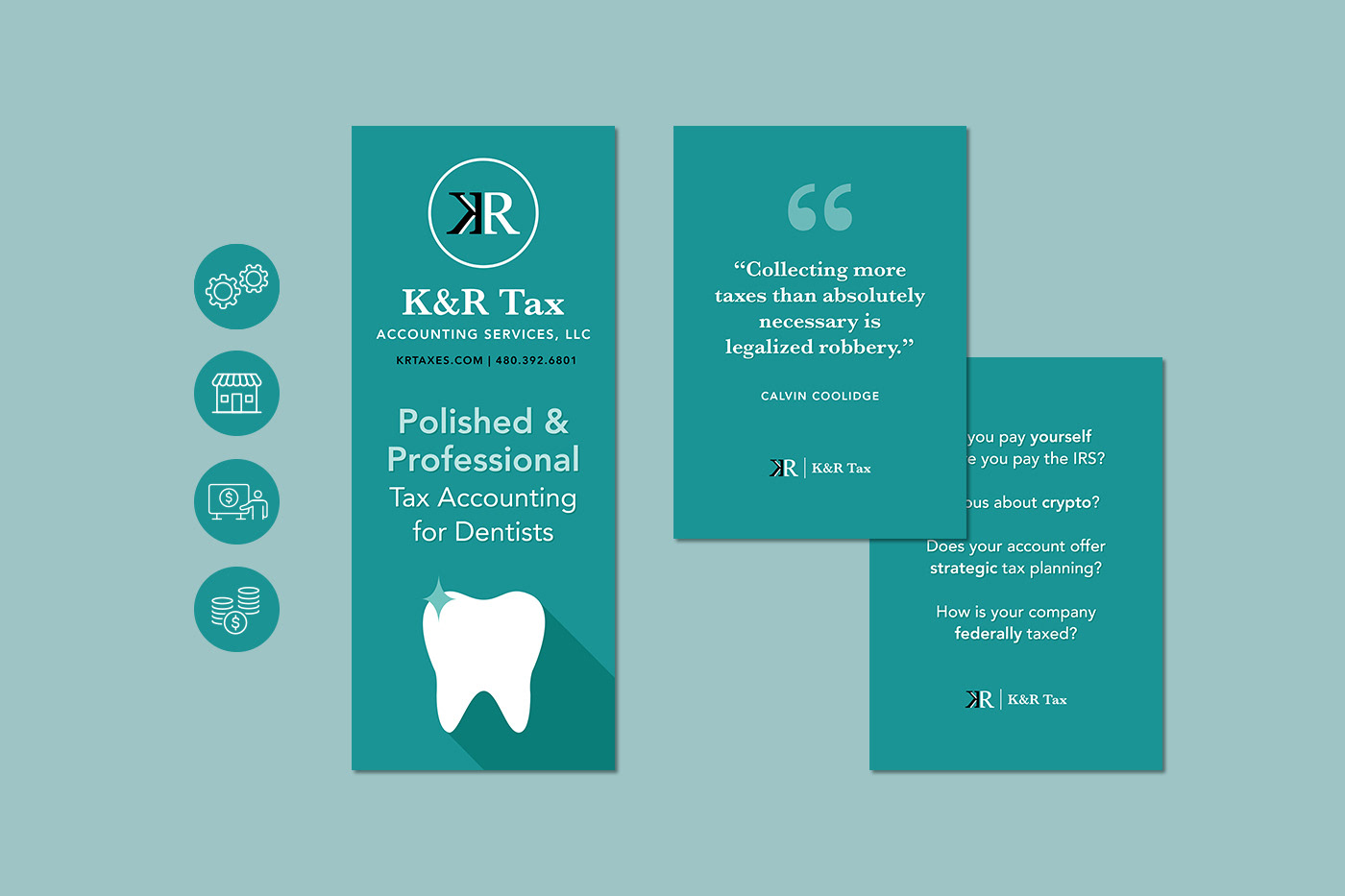 Both digital and print assets are included in this project, as well as a series of emails called Tax Tips for K&R's CRM platform.